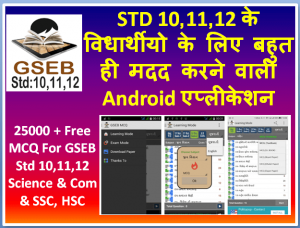 आज में आपको एक एसी Android Application के बारे में बताने जा रहा हु! जो android एप्लीकेशन STD 10,11,12 के विधार्थीयो के लिए बहुत ही मदद करने वाली एप्लीकेशन हे. ये एप्लीकेशन गुजराती और इंग्लिश Medium दोनों के लिए बनायीं गयी हे. इस एप्लीकेशन में आपको 25000 + Free MCQ भी GSEB Std 10,11,12 Science & Com & SSC, HSC की लिए मिल जायेगे
